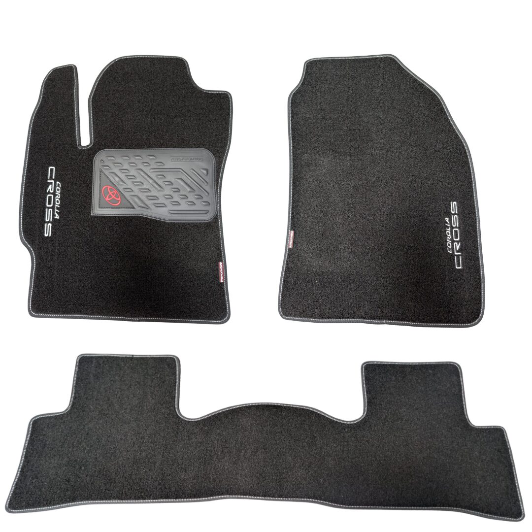 Protege y embellece el interior de tu Toyota Corolla Cross con nuestros exclusivos tapetes de alfombra de lujo. Diseñados para integrarse perfectamente con la robustez y el confort de tu SUV, ofreciendo un estilo premium que resalta la calidad de tu vehículo.